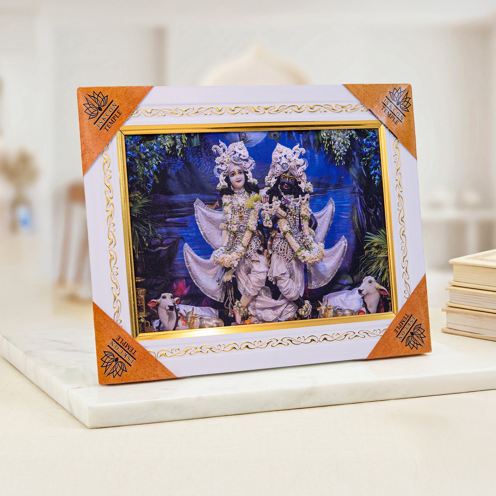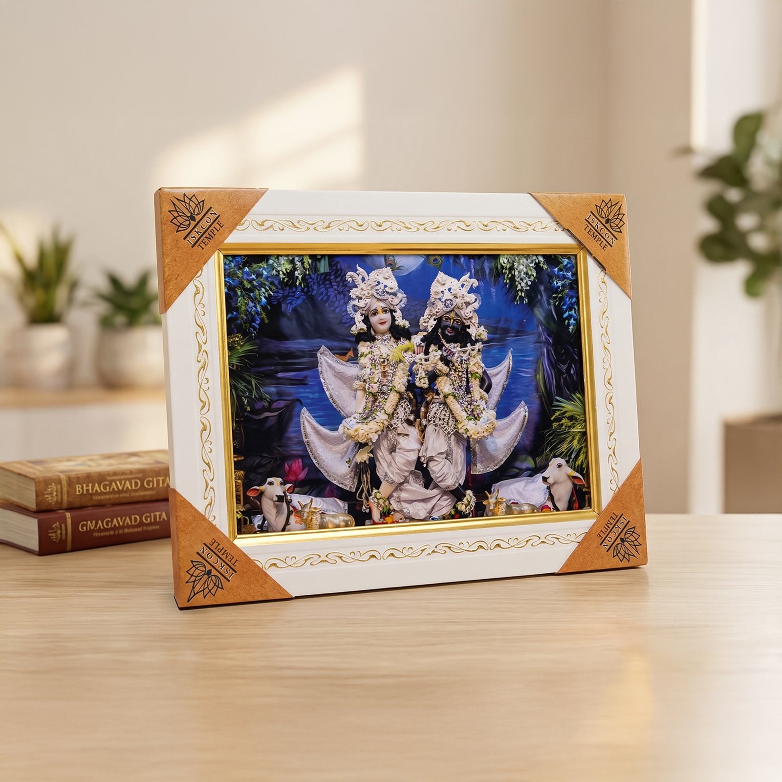Elegant ISKCON Krishna Balaram 11×8 photo frame with premium finish. Ideal for home temple décor, gifting, and spiritual spaces.