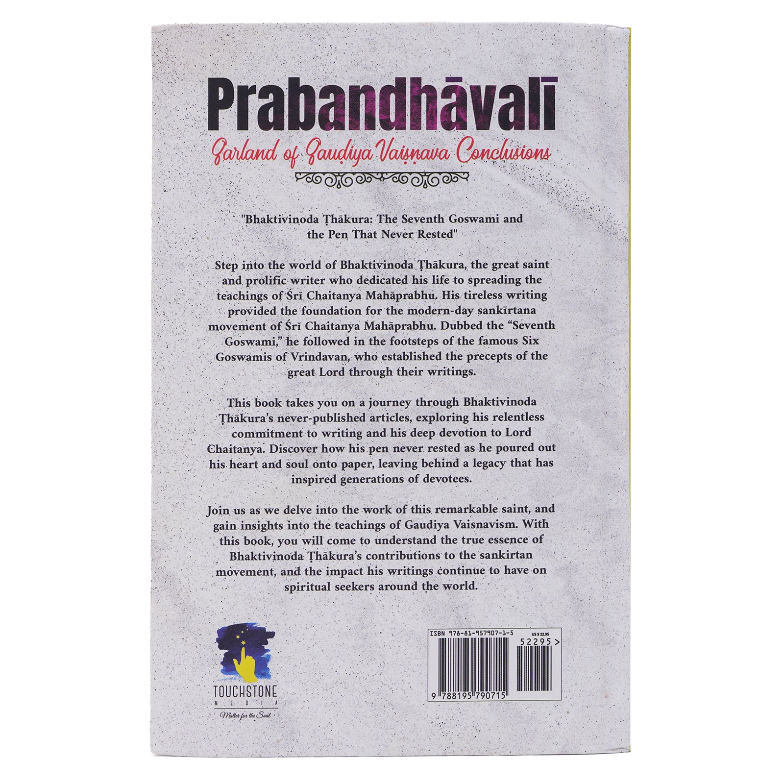 Prabandhavali (Garland of Gaudiya Vaisnava Conclusions) is a profound collection of philosophical essays by Bhaktivinoda Thakur, presenting the essential conclusions of Gaudiya Vaishnavism. This book offers deep insights into the teachings of Chaitanya Mahaprabhu, emphasizing pure devotion (bhakti), the chanting of the holy names, and the ultimate goal of life—love of God.